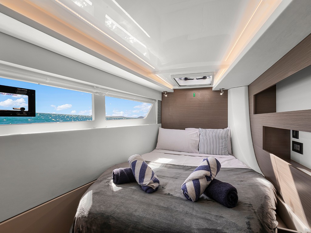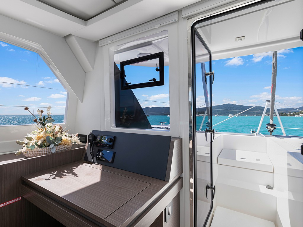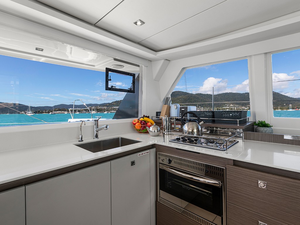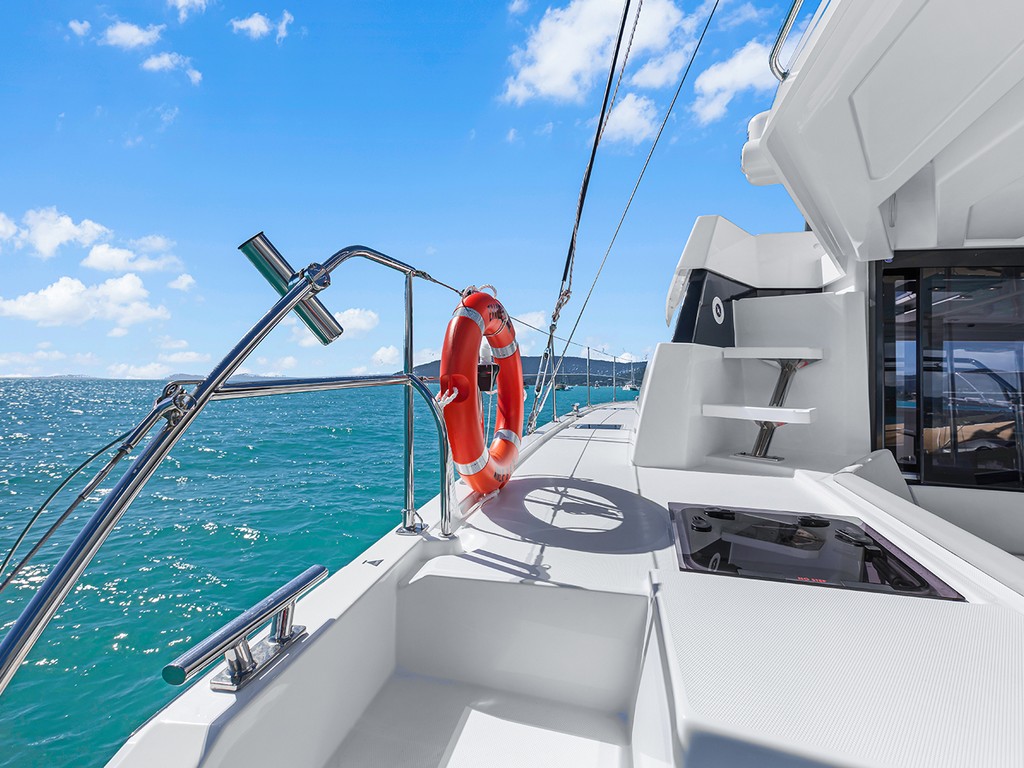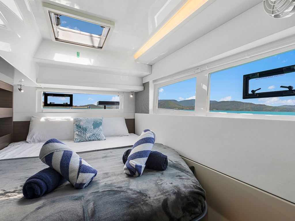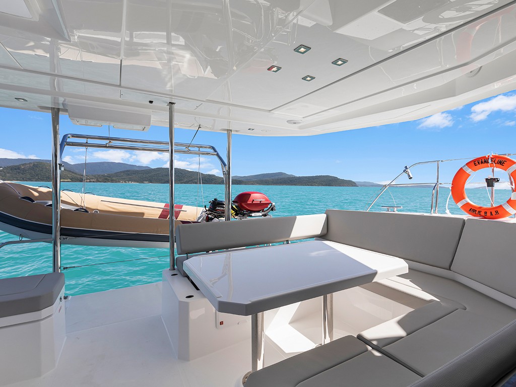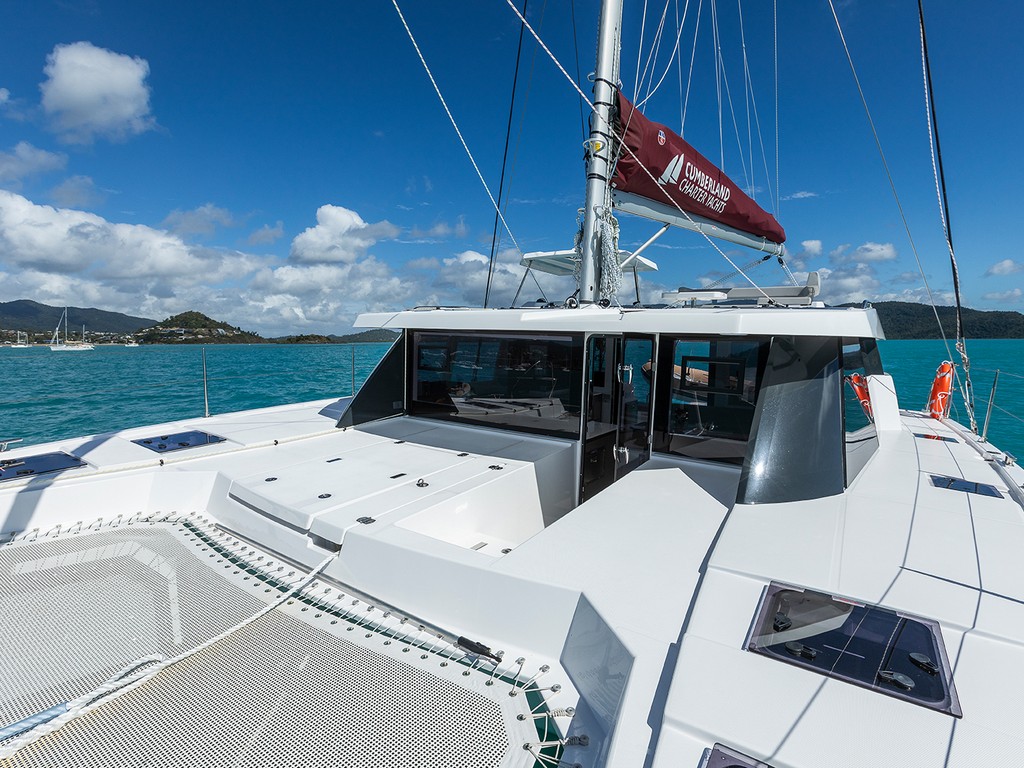 With its spacious and well-appointed interior, impressive sailing capabilities, and striking design the Leopard 42 is a highly sought-after choice for those seeking to explore the beautiful Whitsundays. The upper sundeck lounge adds to the luxuriousness of the vessel..